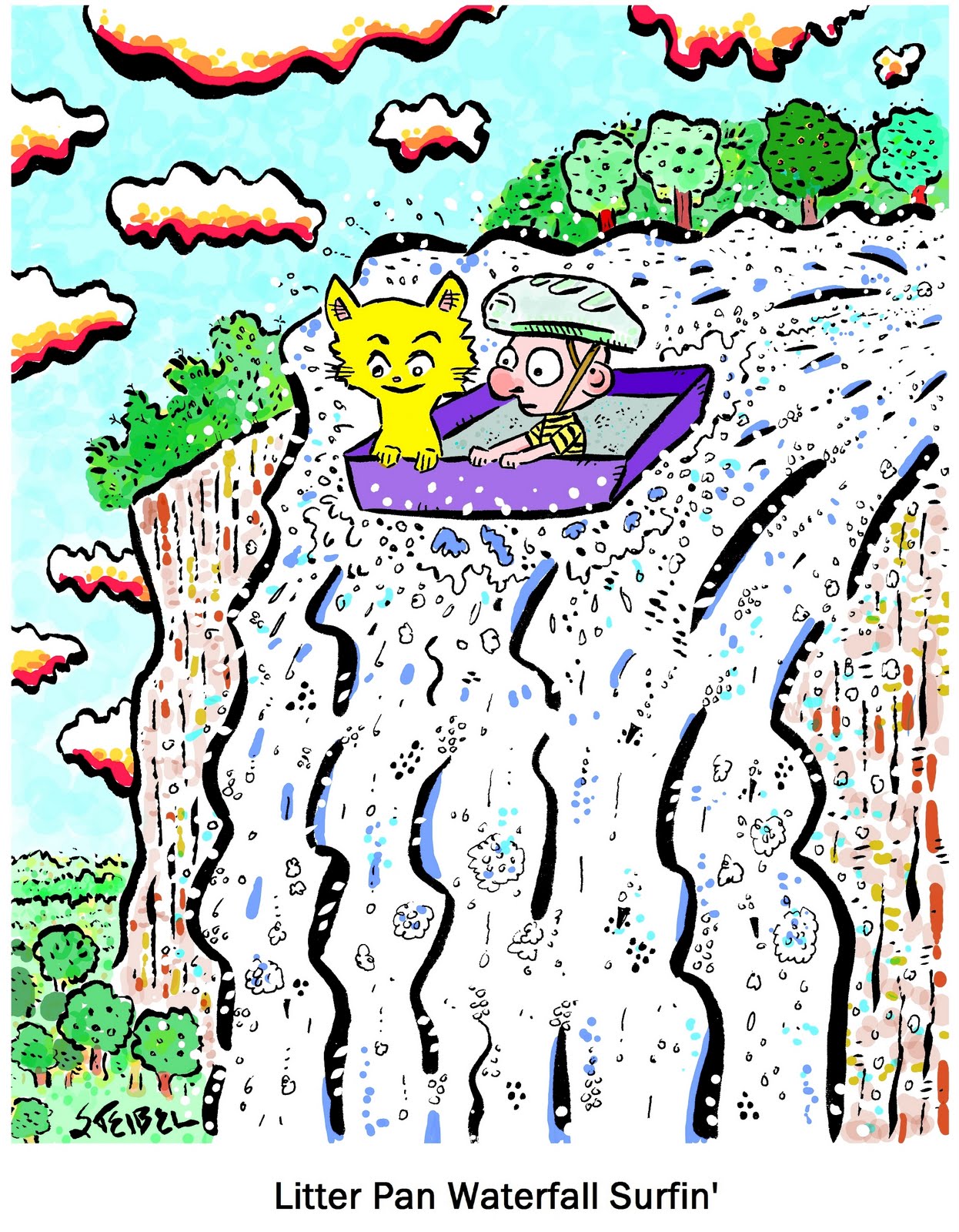 Growing up in the DC area, there were always copies of the Washington Post piled around the house, so I’ve been a big fan of Richard Thompson’s brilliant illustrations for many years. I recently heard Richard and some of his friends are starting a project called Team Cul de Sac where they’re collecting original comics art to be auctioned off for the benefit of Parkinson’s disease research. I just started doing my first official comic strip last week, so I feel pretty silly submitting a piece of my own work, but at least I have an excuse to send Richard this cartoon as a simple way of saying thanks for all of his great work over the years. Best wishes to Richard, his family, and everyone involved with Team Cul de Sac.